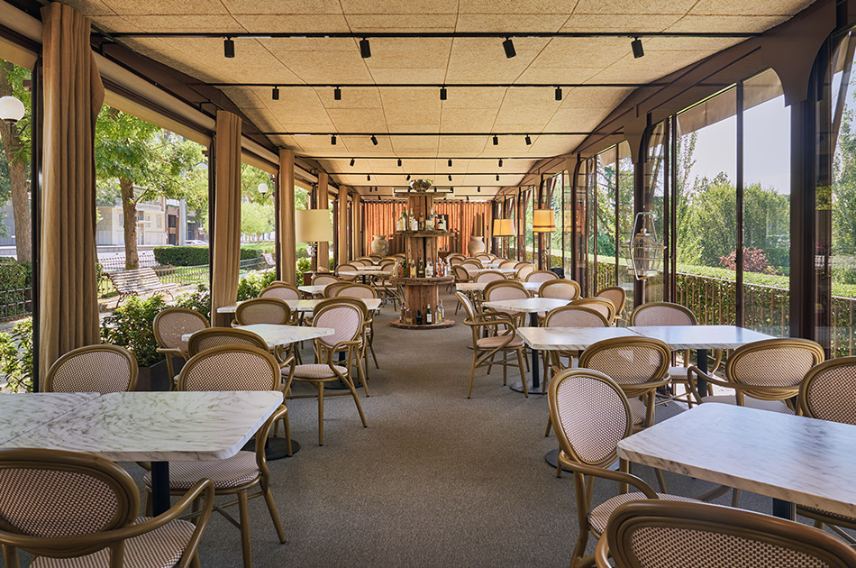Esta nueva incorporación en Pintor Rosales es perfecta haga el tiempo que haga. Tiene dos zonas: si hace bueno, la terraza abierta con vistazas al Parque del Oeste es un auténtico gustazo; y si el día está fresquito, el salón cubierto es cálido y muy acogedor.