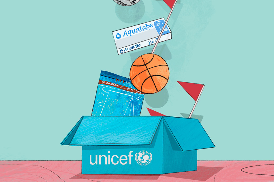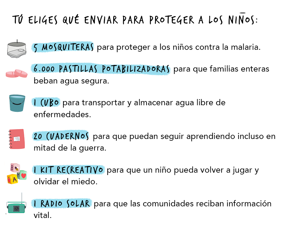 Almacén solidario de UNICEF. Pincha aquí para llenar tu caja. Puedes colaborar desde 3,38 €. Tu donación se destinará a ayudar a los niños y niñas que más lo necesitan.